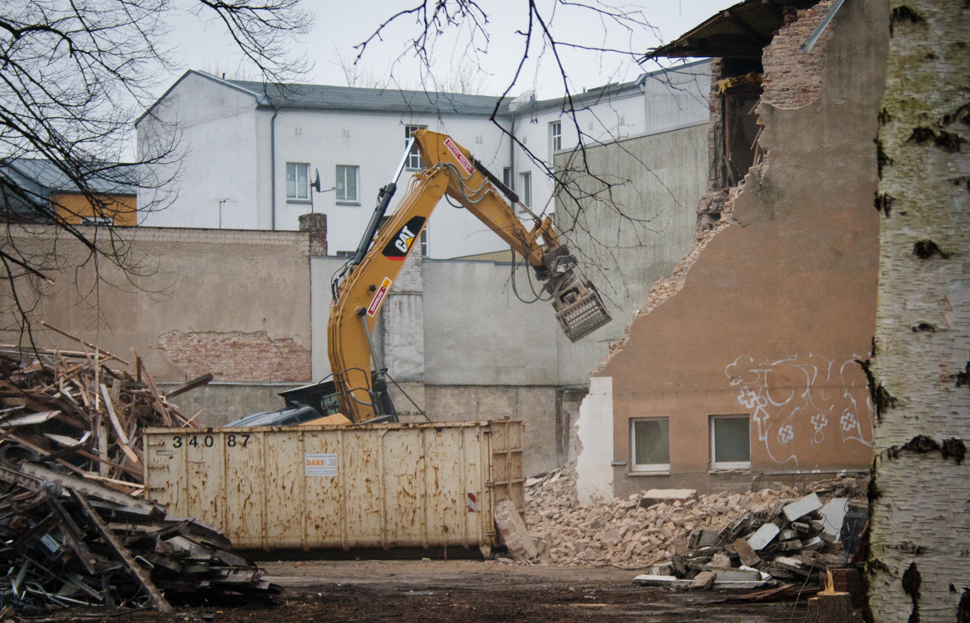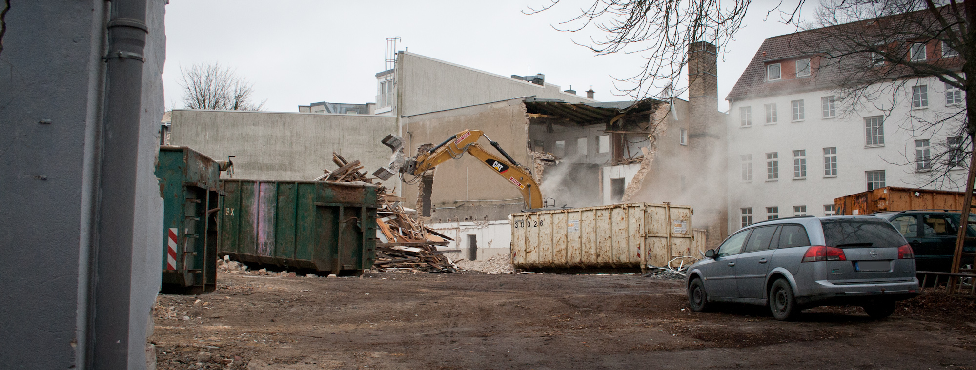 Nachdem der hintere Flachbau nun endgültig Geschichte ist, wird mit dem Abriss des nächsten Gebäudes angefangen. Was da jetzt genau ursprünglich drin war, weiß ich ehrlich gesagt gar nicht.