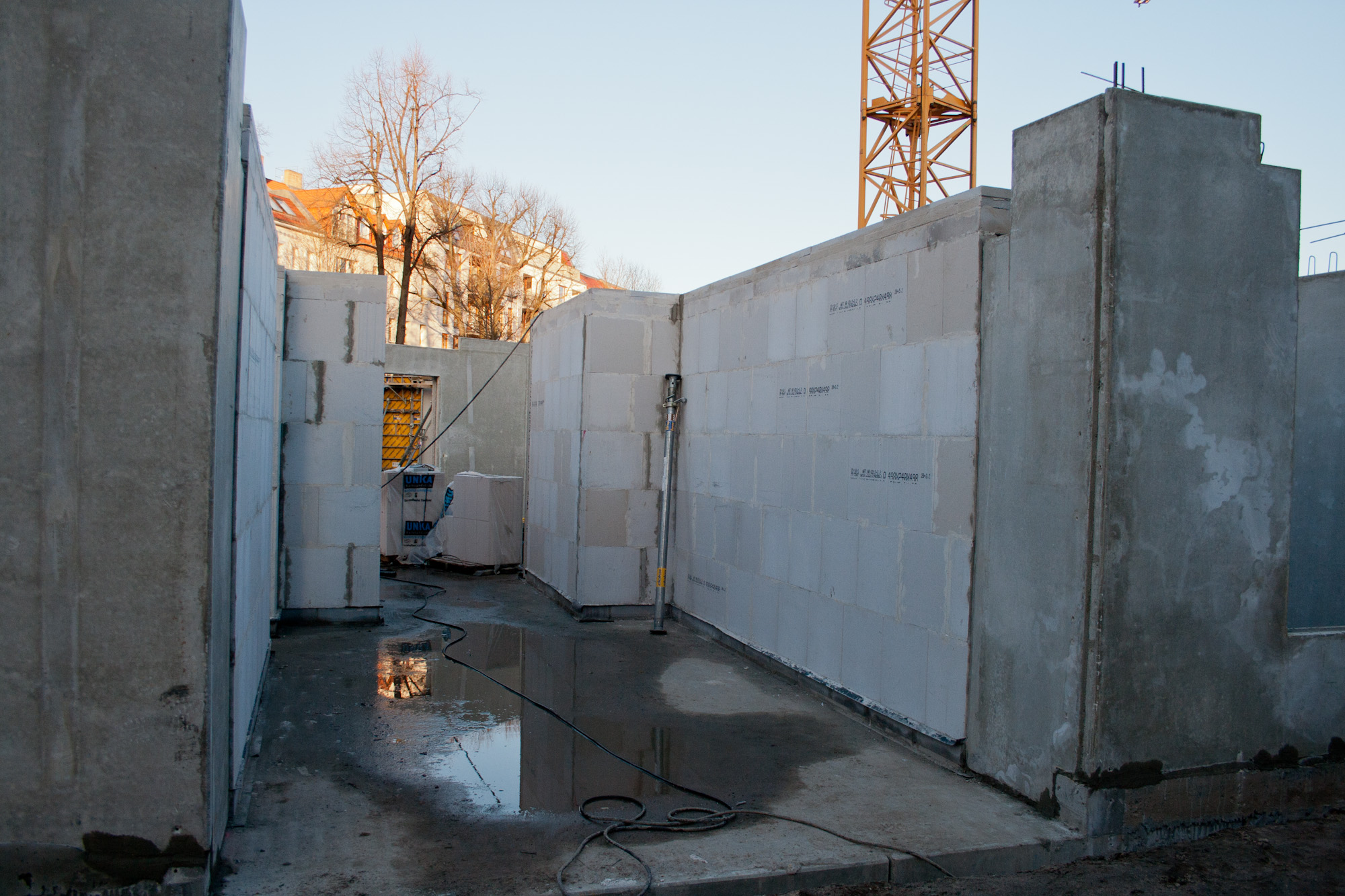Vom Winter ist auch im neuen Jahr keine Spur, daher geht die Bautätigkeit auch unvermindert weiter. Ein weiterer Kran wurde Anfang der Woche aufgebaut und der Rohbau ist nun zum Teil schon im Erdgeschoss angekommen (Haus 3 & 4).