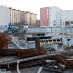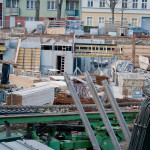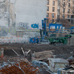An den Grenzen zu den Nachbargebäuden wird an der Unterfangung gearbeitet:
