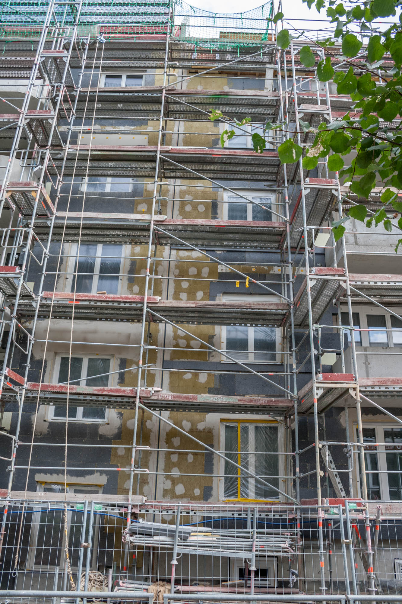Baufortschritt Rohbau (VIII) Viel rohzubauen ist nicht mehr, bald muss ich mir nen neuen Titel überlegen! An Haus 3 und 4 wird bereits das Wärmedämm-Verbundsystem (WDVS) aus Polystyrol und Riegeln aus Mineralwolle (Brandschutz) angebracht. Leave a Reply Cancel replyYour email address will not be published. Required fields are marked *Comment * Name * Email * Website Save my name, email, and website in this browser for the next time I comment. Δ