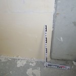 Um eine Schallbrücke zu vermeiden, sind bei Baustoffwechseln – bei uns also zwischen Gipswand und Stahlbeton (siehe Foto oben) – Randstreifen aus Gummi angebracht. Diese dürfen nicht kürzer sein als die Wanddicke (müssen also bündig abschließen oder überstehen). Das war bei zwei Exemplaren nicht der Fall: