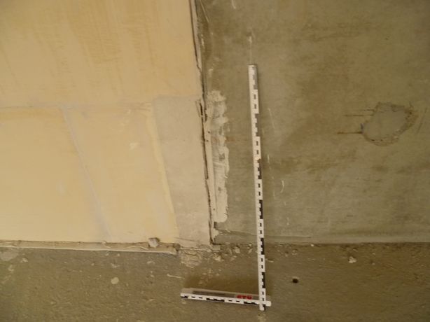 Eine Wand zwischen zwei Zimmer enthält Risse, die zu vermörteln sind: