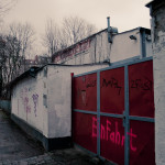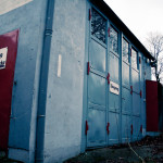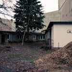 Die an den Spielplatz angrenzenden Gebäude gehören zu einer ehemaligen Autowerkstatt, die es seit dem Verkauf des Grundstücks durch die katholische Kirche dort nicht mehr gibt. Es handelt sich um Flachbauten, in denen im Prinzip nichts mehr ist (hoffentlich auch keine Altlasten im Boden — laut Verkäufer liegt aber ein positives Bodengutachten vor und die Erde werde eh für die Tiefgarage bis zu einer Tiefe von 8m ausgehoben).