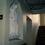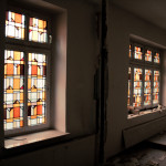 Das Gebäude Gürtelstraße 8 ist der ehemalige Sitz der Caritas Brandenburg. Der Hochbau beherbergte neben diversen Büros auch eine Kapelle, in der sich noch Mosaik-Glasfenster befinden. Das Gebäude ist leer und verfallen, alle Leitungen wurden aus den Wänden gerissen — da waren bestimmt Kupferdiebe am Werk.