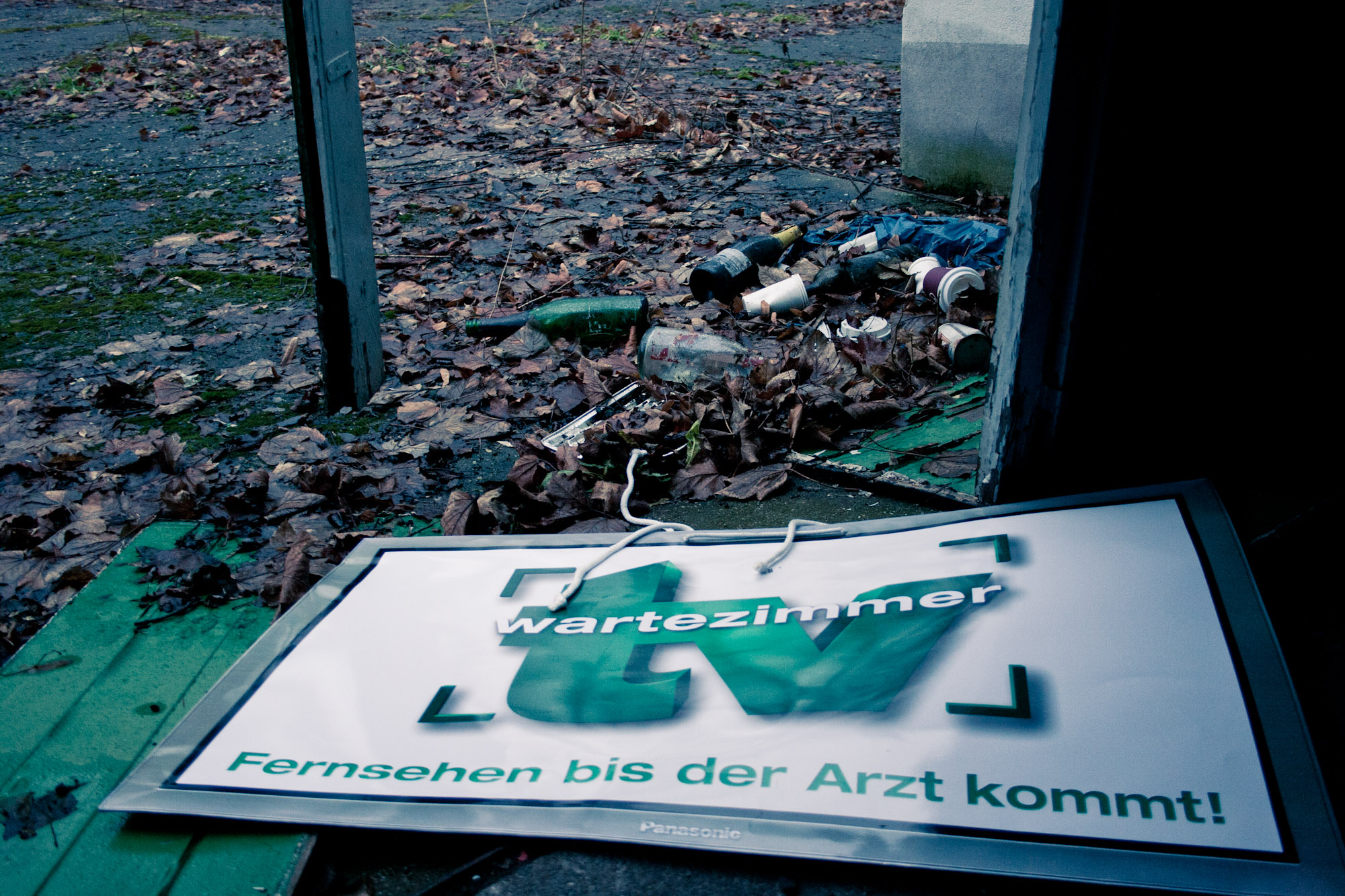 Hinter dem Gebäude befindet sich ein weiterer Flachbau, der vermutlich einst die Kita und den Hort beherbergte. Einzelne Bilder an den Wänden zeugen noch davon.